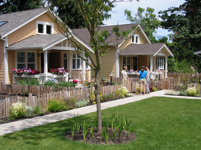Foran verandaen er det gjerne en liten forhage, hvor man kan vise fram sine hagepreferanser og styrke følelsen av individualitet i fellesskapet.